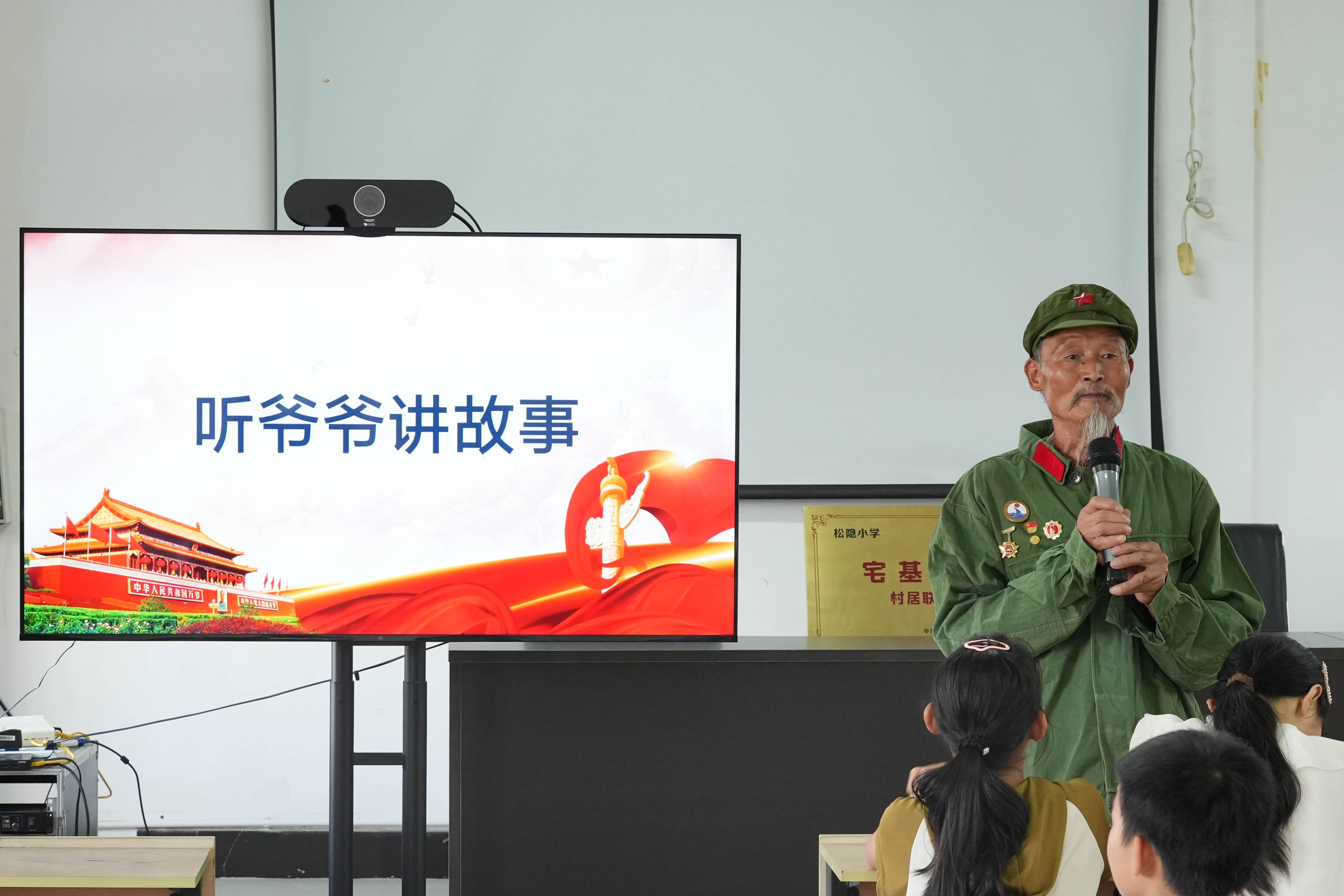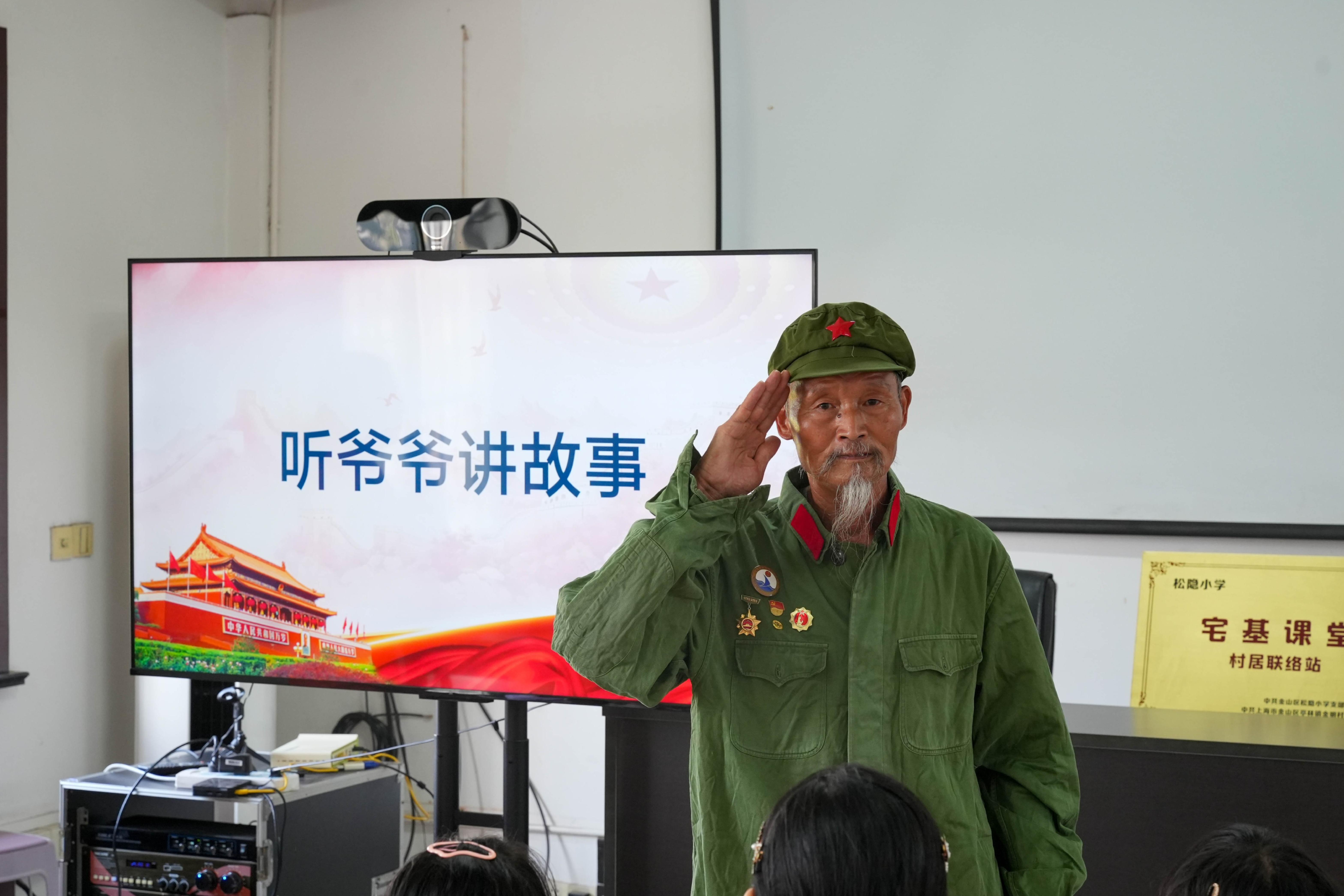 随着签到环节结束,活动正式拉开帷幕。老师首先向孩子们介绍了本次活动的核心人物——退役军人孙水根爷爷。孙爷爷有着不平凡的军旅履历:他曾在对越自卫反击战中冲锋在前,是部队里的重机枪手、投弹能手,因表现突出担任班长并加入中国共产党;即便退伍后,他也始终不忘初心,积极投身家乡生产建设,用实际行动践行“为人民服务”的誓言。