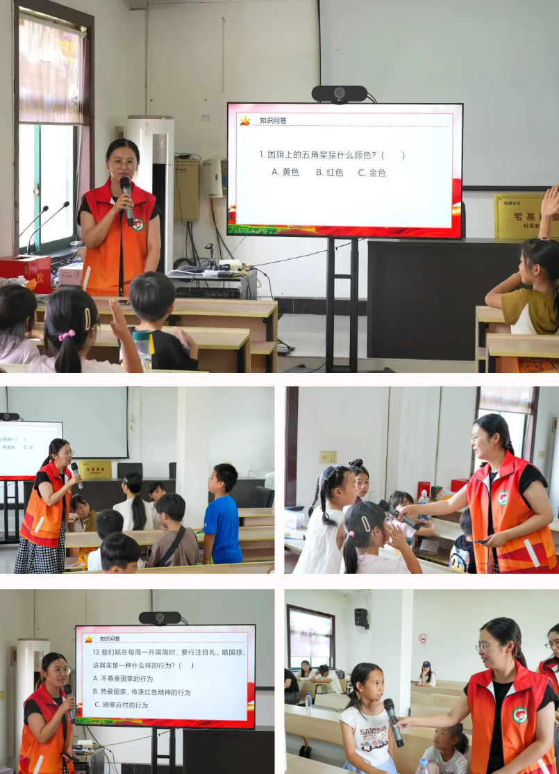 互动提问环节紧接着展开,孩子们的好奇心被彻底点燃,纷纷举手向孙爷爷提问:“您当时在战场就不害怕吗?”“训练的时候累不累?”“打仗的时候晚上也不能休息吗?”“怎么从敌人的埋伏下逃出的?”面对一个个稚嫩又真诚的问题,孙爷爷耐心逐一解答,让孩子们对“英雄”有了更具体的认知。问答结束时,现场响起阵阵热烈掌声,孙爷爷也庄重地向孩子们敬了一个军礼,这一幕成为活动中温暖又深刻的瞬间。