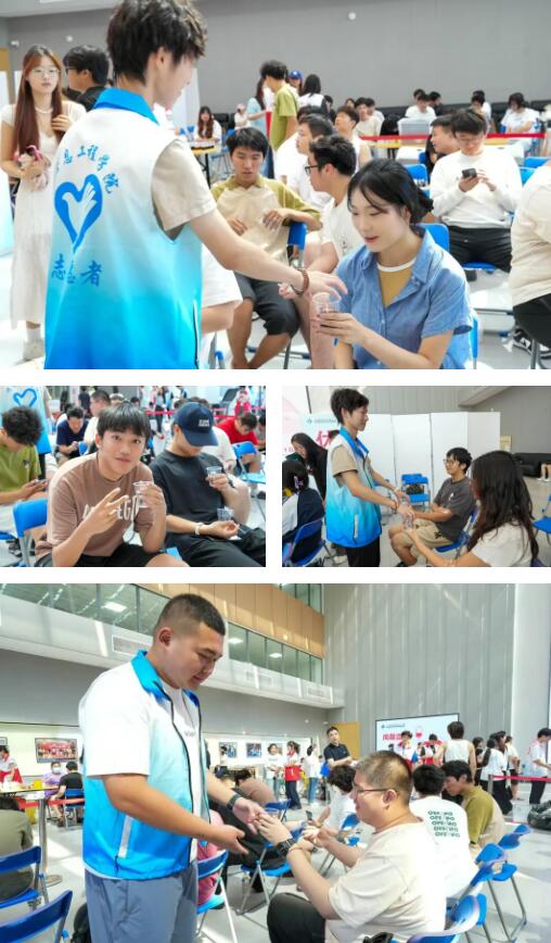 采血过程中,即便有同学因紧张微微攥紧拳头,也始终保持微笑,轻声说着“没关系,我可以”。同时,辅导员和志愿者们对献血同学的细致关怀,也使得整个现场洋溢着温情与感动的氛围。
